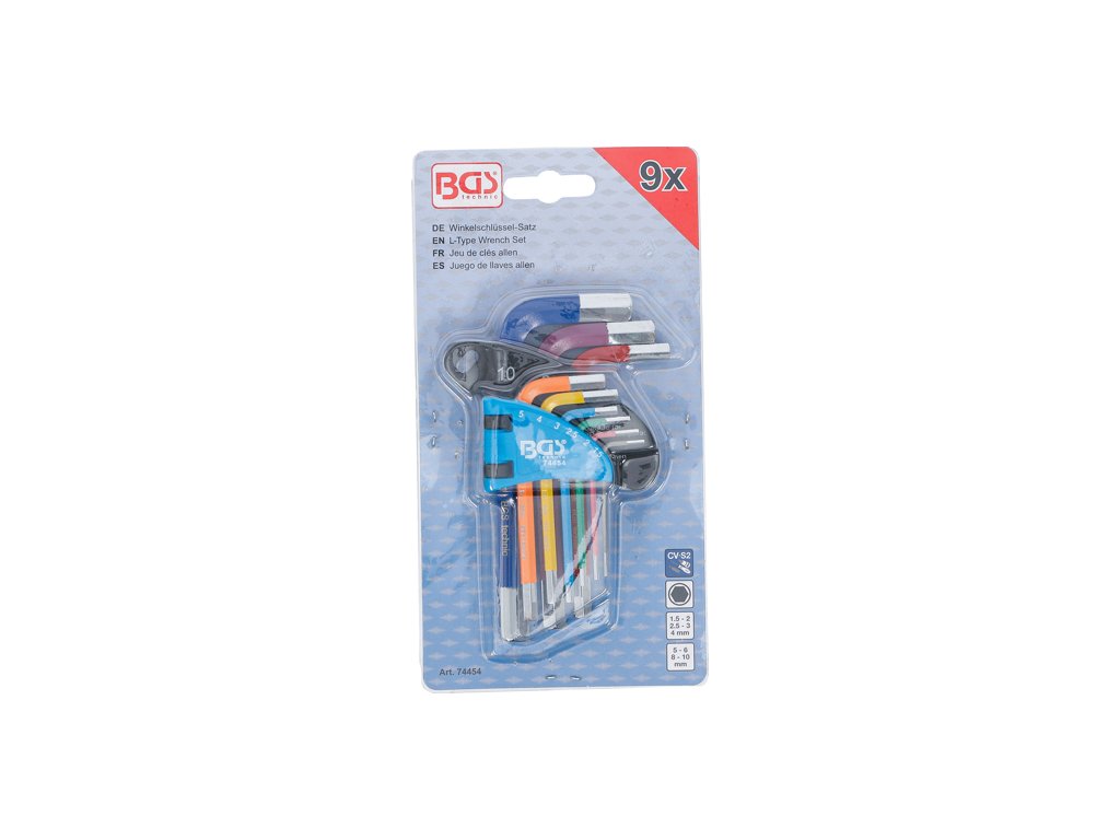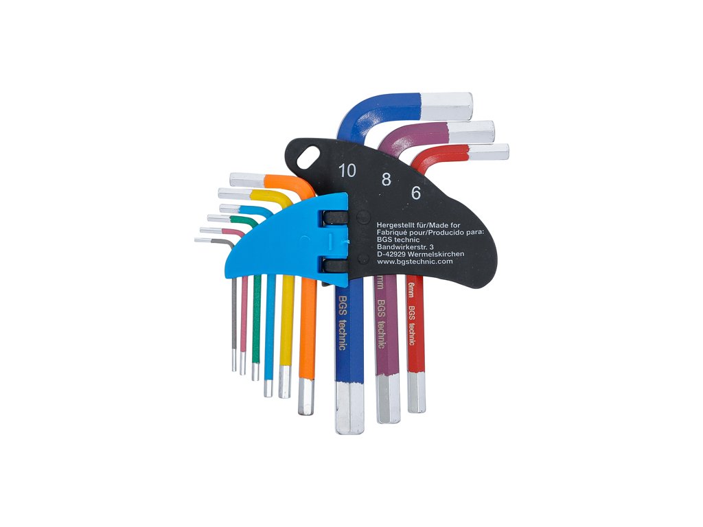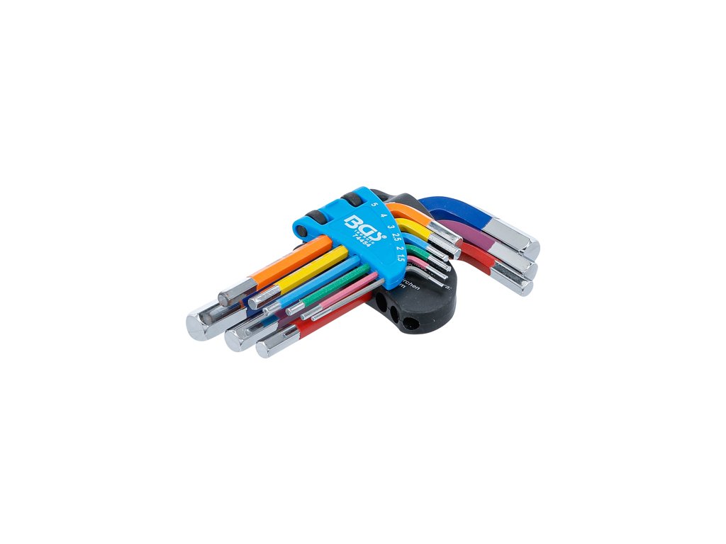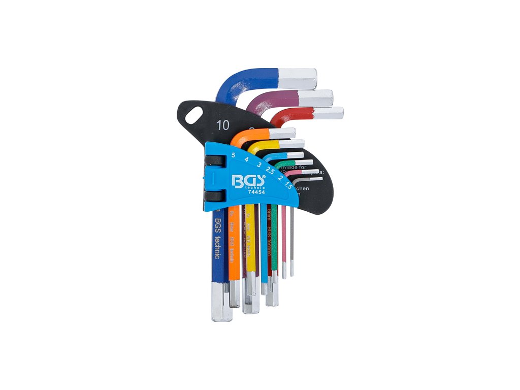 Praktická sada barevných imbusových klíčů v krátkém provedení, velikosti 1,5-10 mm, sada 9 ks – BGS Technic 74454