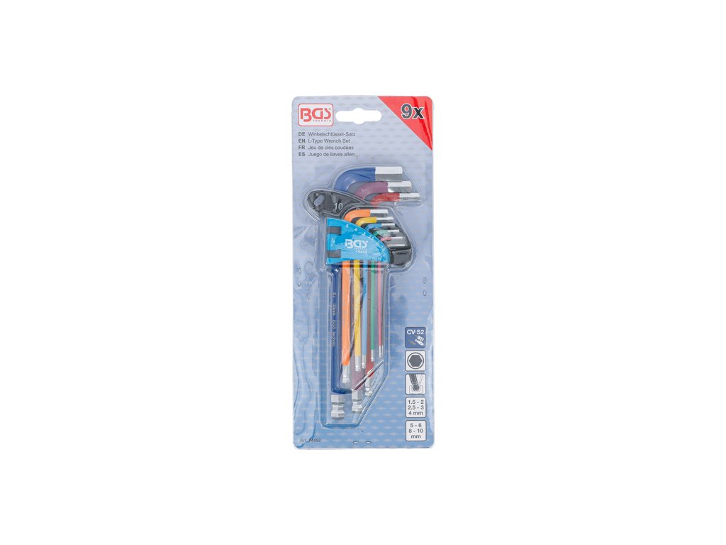 Praktická sada barevných imbusových klíčů s kuličkou, velikosti 1,5-10 mm, sada 9 ks – BGS Technic 74452