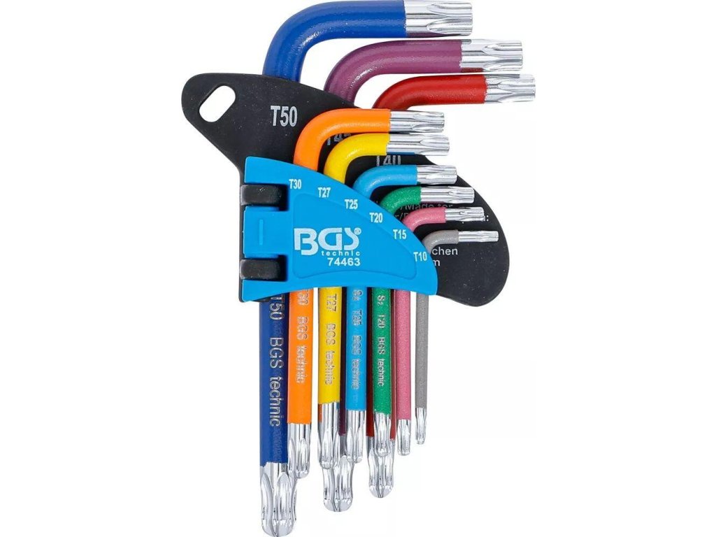 Zástrčné klíče Torx s otvorem T10-T50 barevné, krátké s kuličkou, sada 9 ks - BGS 74463