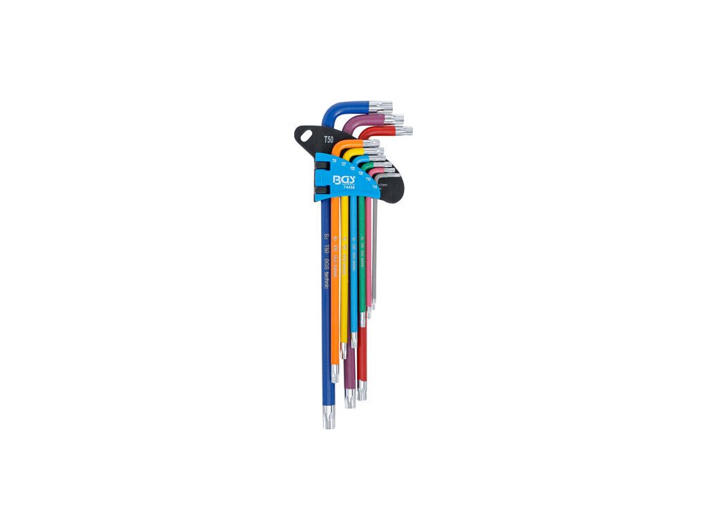 Praktická sada barevných klíčů Torx v extra dlouhém provedení, velikosti T10-T50, sada 9 ks – BGS Technic 74459