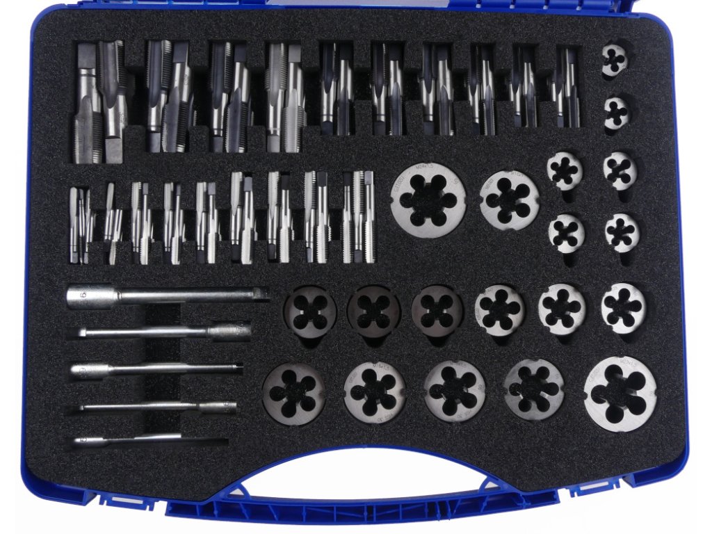 Závitořezné nářadí pro vytvoření nových či regeneraci starých vnějších i vnitřních závitů metrických rozměrů. Vyrobeno z nástrojové oceli (NO).