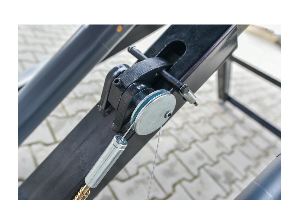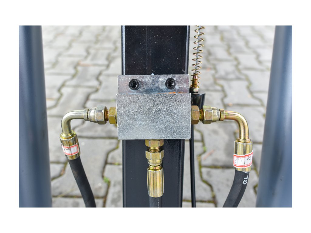 Konstruováno s důrazem na bezpečnost: robustní nůžkový mechanismus udržuje plošiny vždy ve vodorovné poloze, válce mají mechanický zámek zabraňující samovolnému poklesnutí plošin. Bezpečnostní západka je uvolňována stisknutím rukojeti.