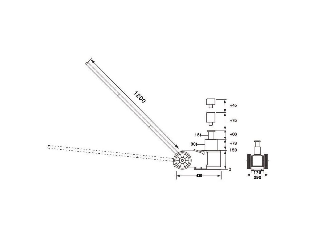 Zvedák pneumaticko-hydraulický S30-2ML, 30/15t, pojízdný, dvoupístový se skládací rukojetí